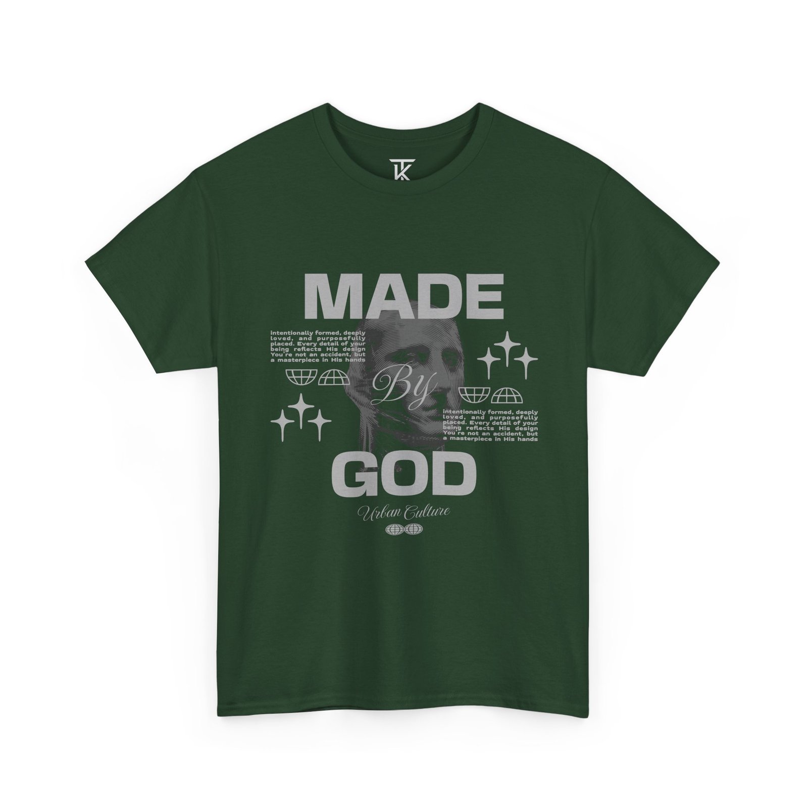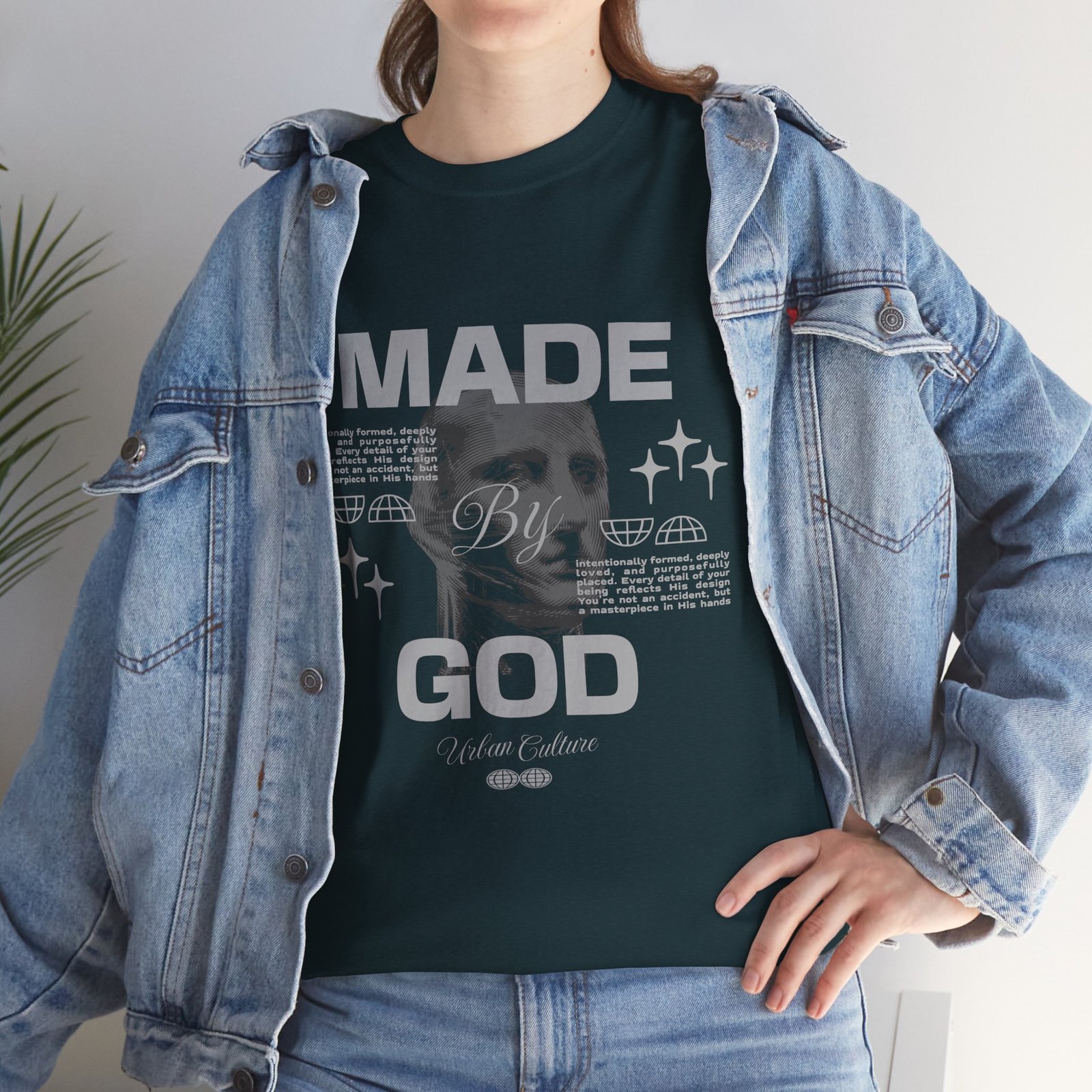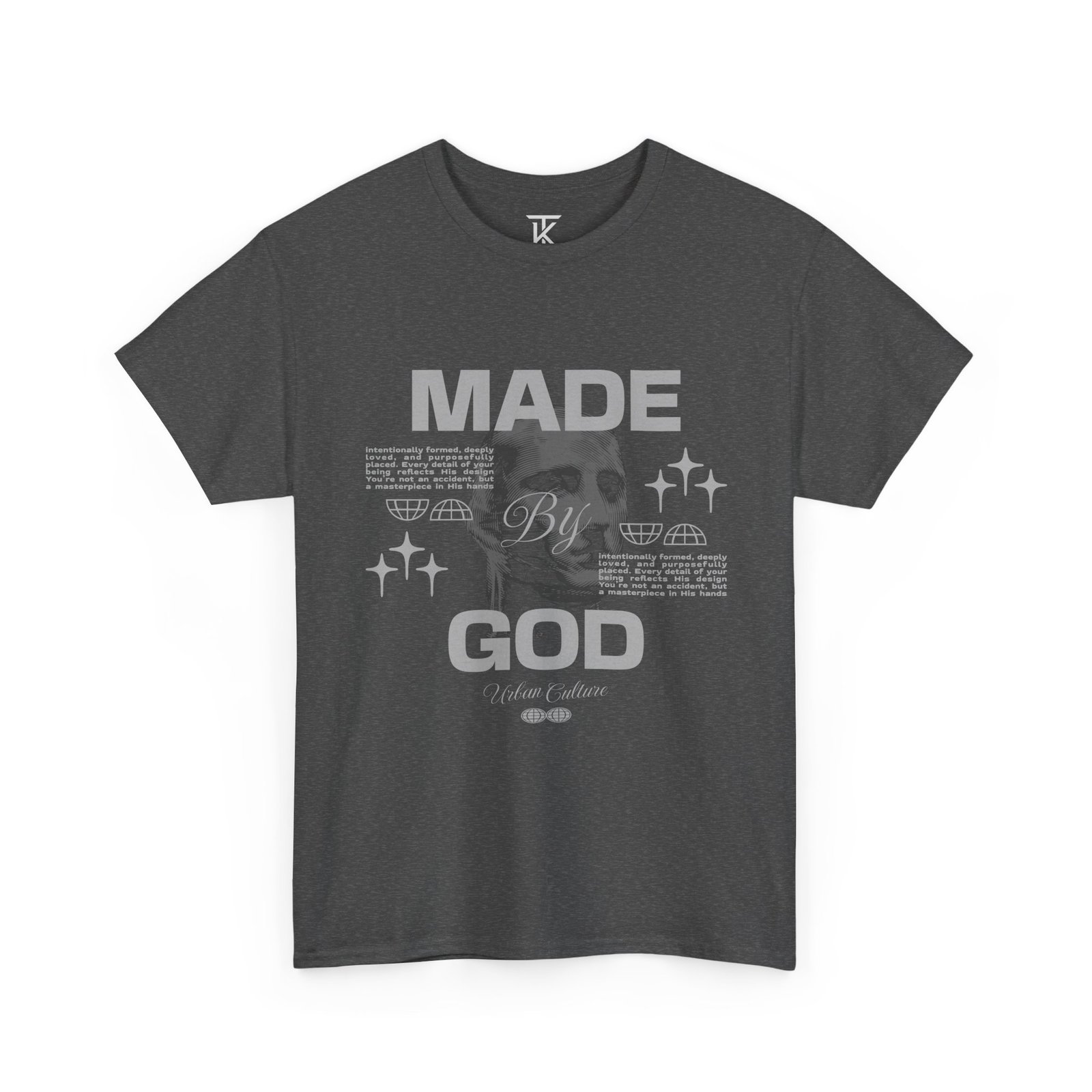 Made By God Graphic Tee — Bold Religious Typography Christian Shirt